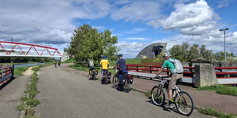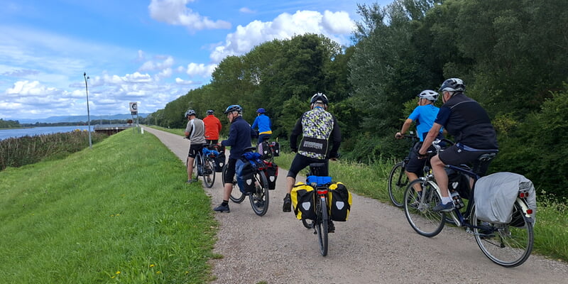 Von Basel kommend bildet der Rhein den Grenzfluss zwischen Frankreich und Deutschland. Auf fast 200 Kilometern folgt der Rheinradweg den beiden Ufern entlang von Naturschutzgebieten, malerischen Dörfern und Straßburg bevor er Karlsruhe erreicht.