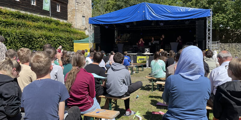 Jugendliche aus Thüringen, Sachsen-Anhalt und darüber hinaus, finden sich in Volkenroda ein, um eine Festivalwochenende miteinander zu verbringen.
